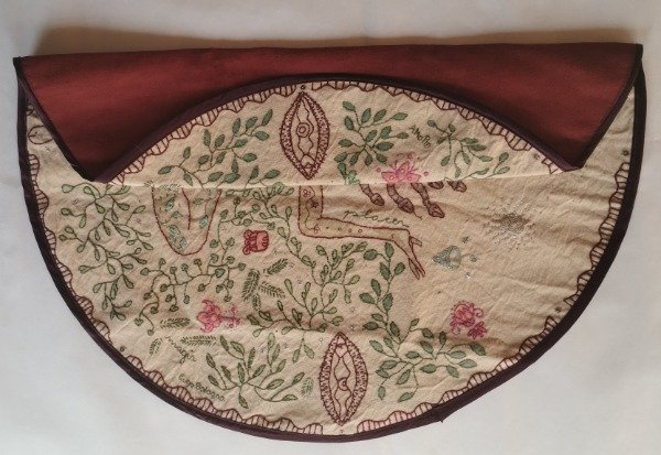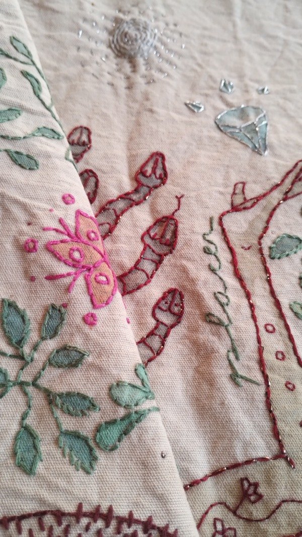Paño circular de tarot pintado y bordado a mano. Para hacer magia en tus rituales y tiradas.